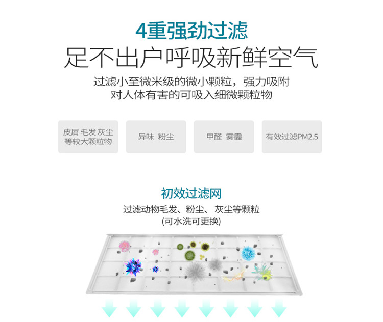 4、五檔風(fēng)速,開蓋斷電,四重過濾,H13級過濾,過濾效率達(dá)99%以上